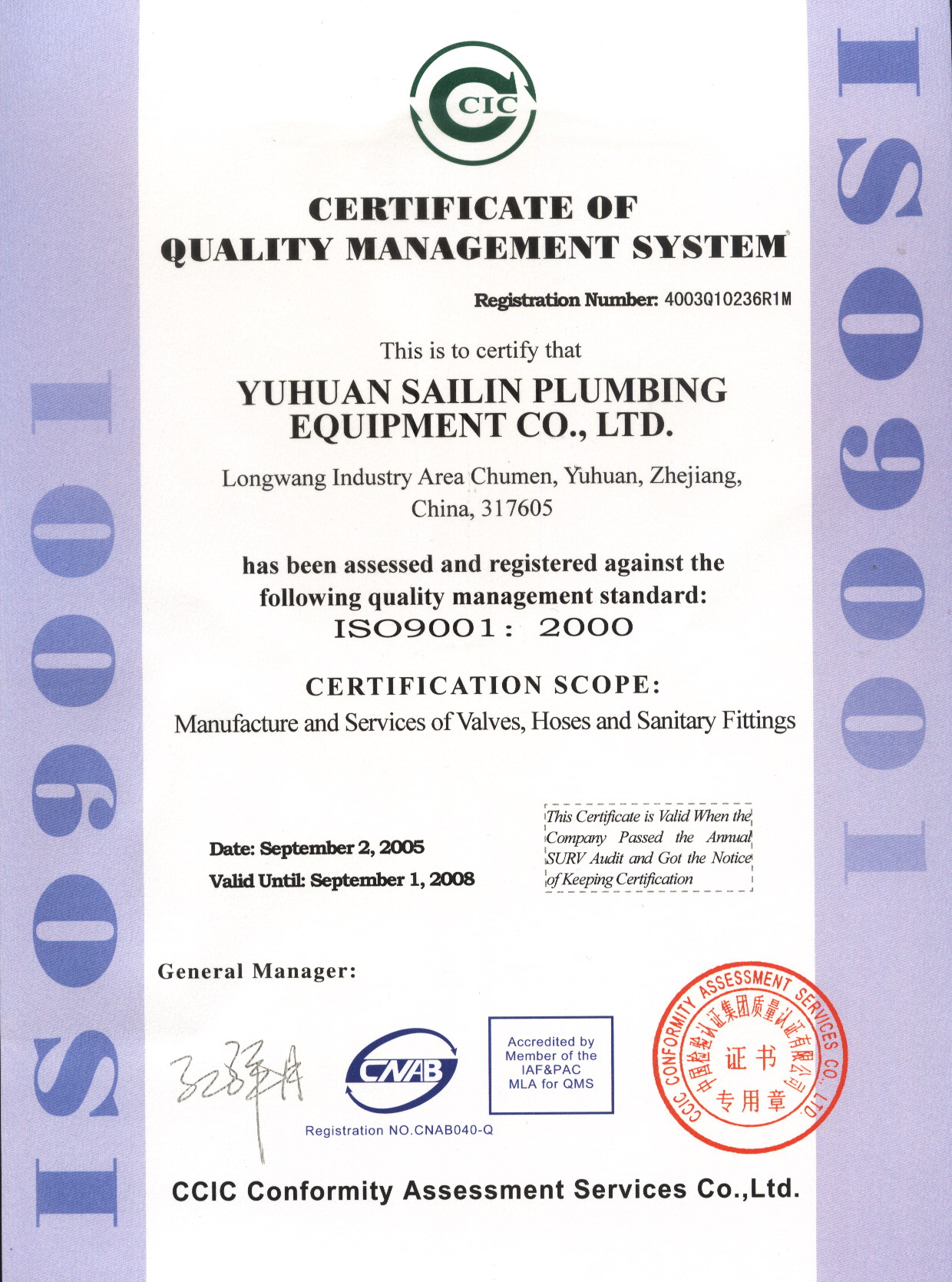 Yuhuan Sailin Plumbing Equipment Co., Ltd.